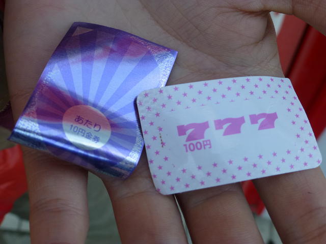 ちなみに、配達の合間に当たり付き駄菓子を100円分買って、お餅屋さんの息子とどっちが多く当たりを毎年勝負してるんですが、息子は100円で110円当てやがりました。