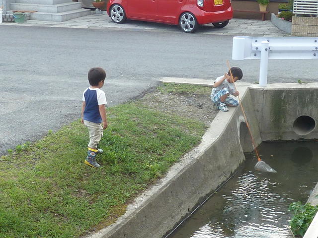 あの場所はよく捕れるのか、なぜか子ども達はあそこでよく何かを捕ろうとしてるんですね。
