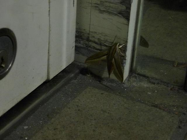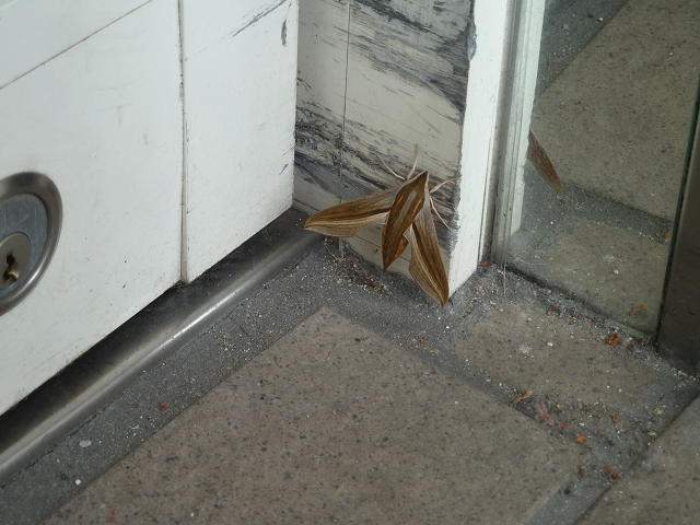 土曜の朝に鍵を開けようとしたら、鍵の側にガがいました。