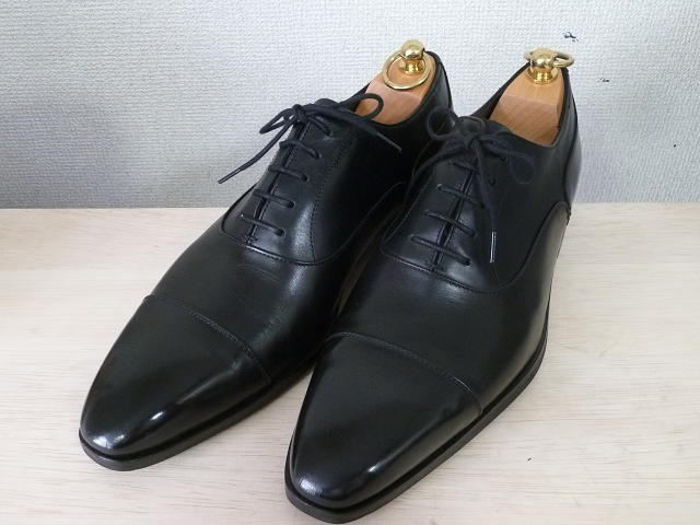 靴みがき、左足がみがく前で右足がみがいた後。