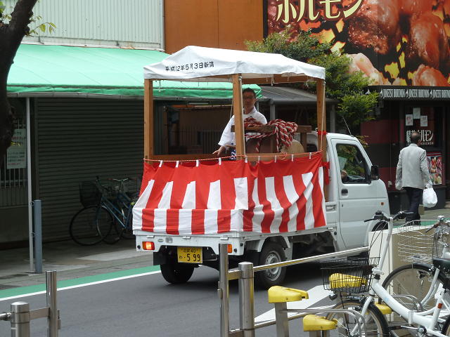 写真の左に黒い台を持ってる人がいますが、実はコレがけっこう重くて、密かに神輿を担ぐよりも大変です(笑)