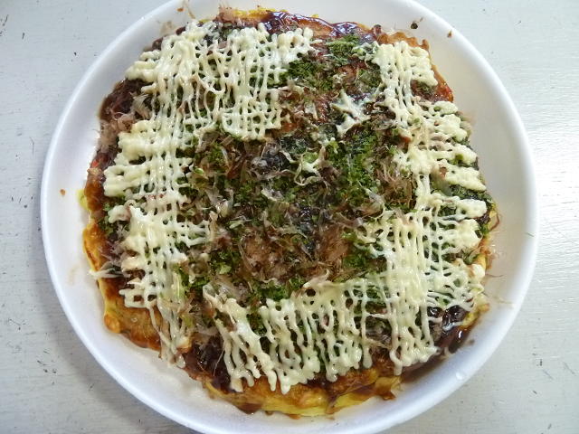昨日のお昼に、商店街にあるお好み焼き屋さん「味美」でお好み焼きをお持ち帰りしました。