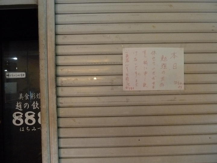 しかし、昨日はお休みだったらしく、なんか貼り紙が貼ってありました。
