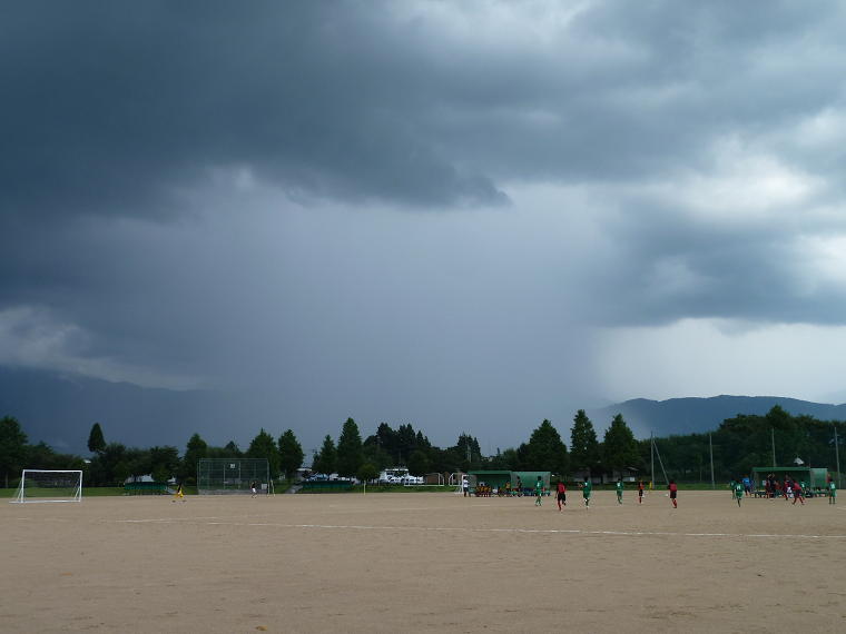 試合会場は山の中なんですが、大会も終盤に差し掛かった頃に、雷がゴロゴロと鳴り出し・・・。
