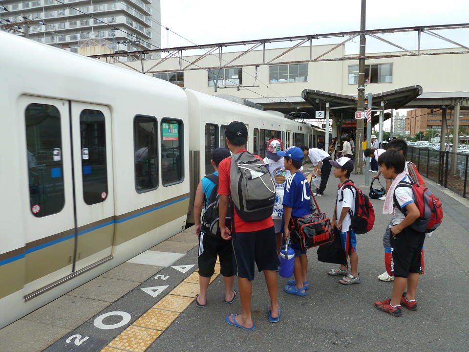 親の付き添いはなしで、子どもたちと電車で近江舞子まで行きました。
