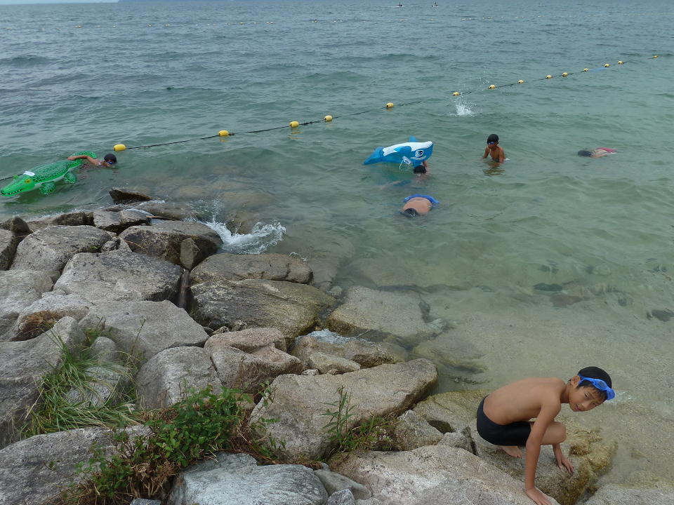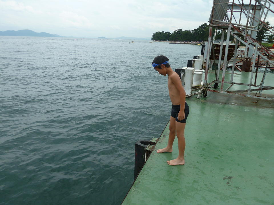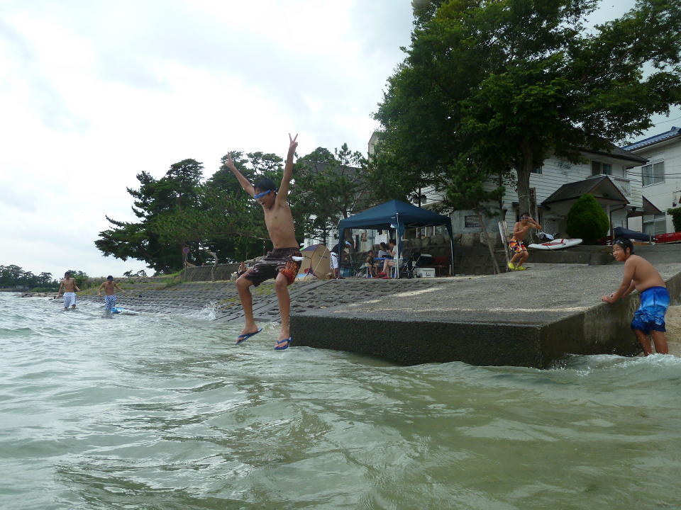 ビビってた子どもも、沖側でなく陸側なら飛び込めるようになりました。