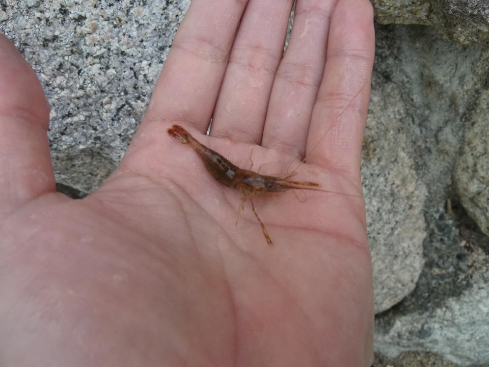 岩の間にはエビもいます。