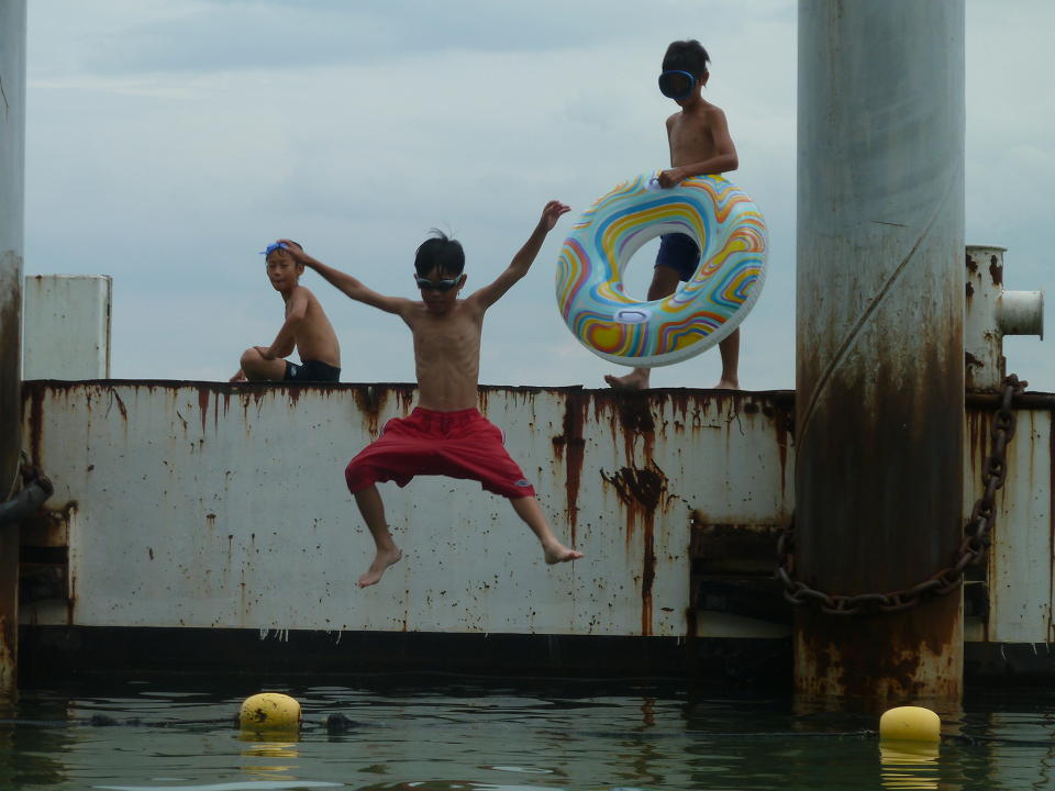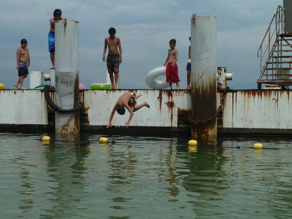 この船着き場は絶好の飛び込みポイント。