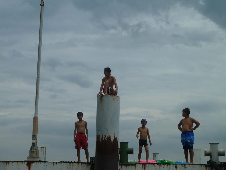 午後からは少し場所を変えて、今は使われていない船着き場で遊びました。