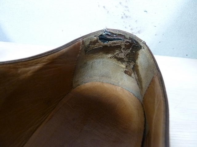 ただ、かかとの内側がやぶけるのは脱ぎ履きの際に靴べらを使ってないか、サイズが合ってないから擦れてやぶけるというパターンだと思います。