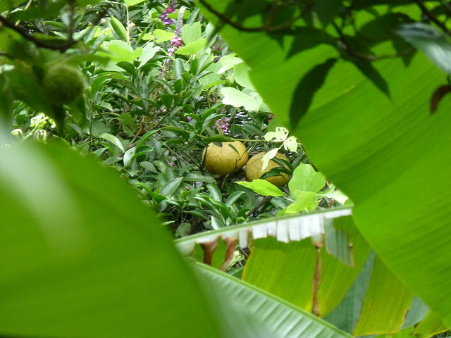(実際にくだもの通りの柑橘類はもう緑の実が生ってます)