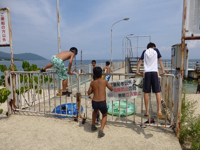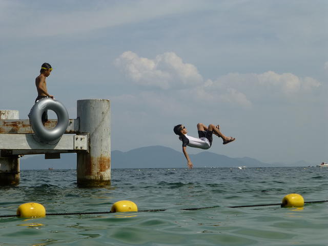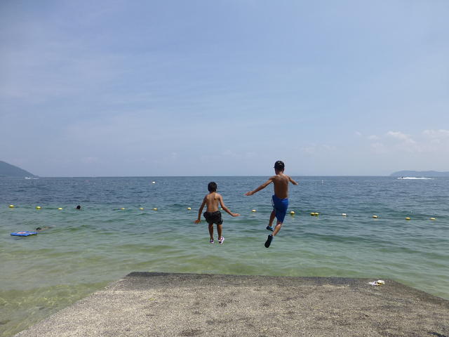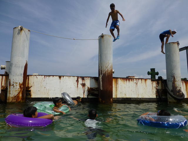 とりあえず僕が見本で飛び込んだら子ども達も続きます。
