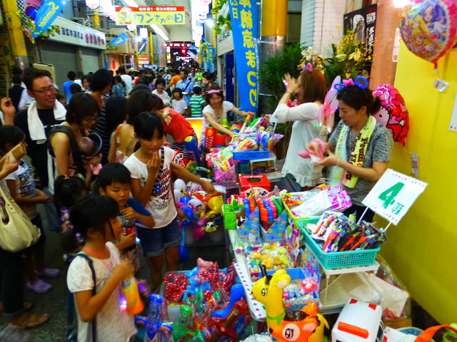 くじ引きやら金魚すくいやらいろいろと出店があります。