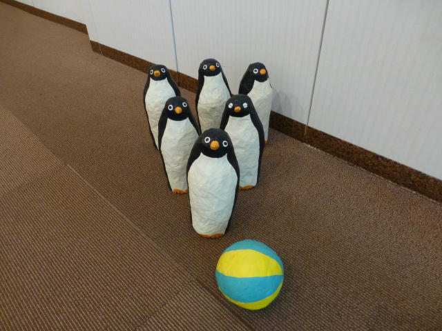 ペンギンのボーリング。