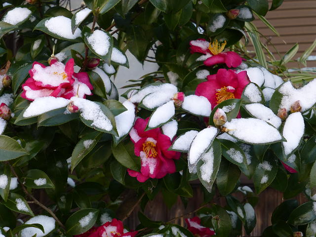 椿は雪がのっかるとまた風情は出るけども。