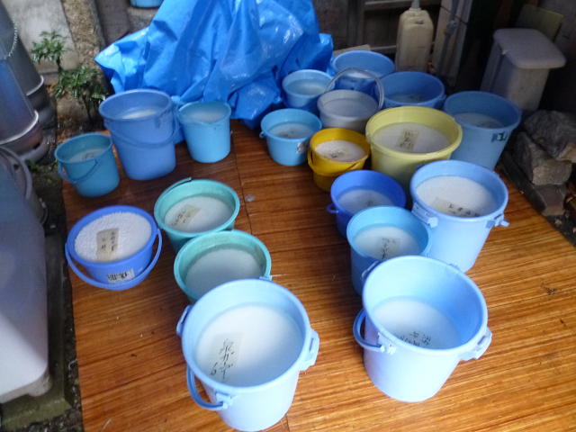 お餅になる前、水にひたされてるもち米達。