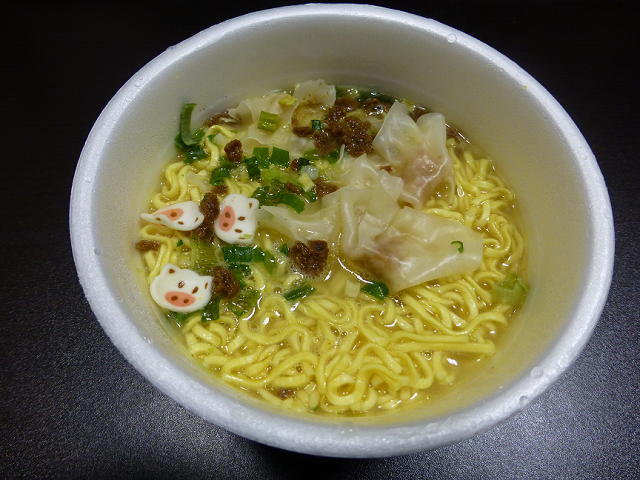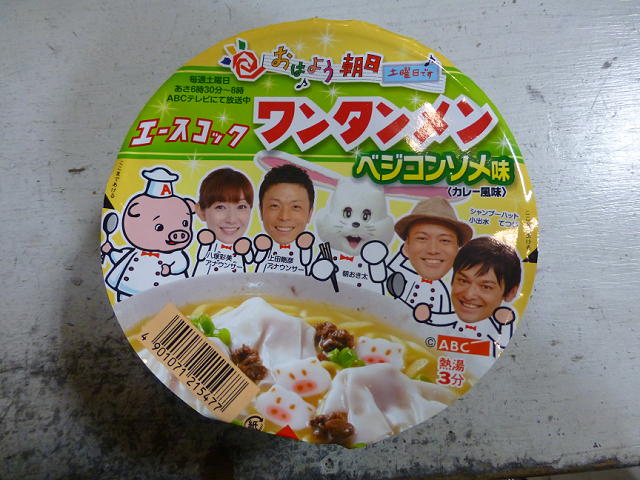 「おはよう朝日土曜日ですワンタンメン」(98円)。
