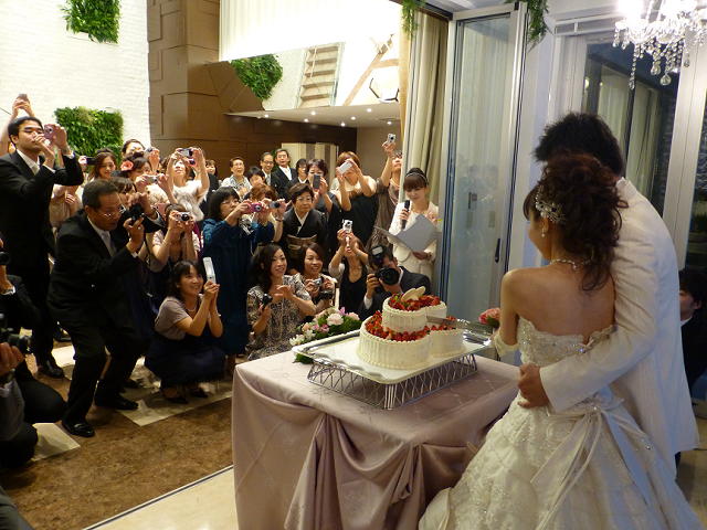 ケーキ入刀、人が集まりすぎ(笑)
