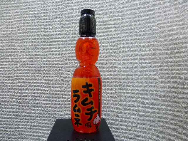 ラムネなんでちゃんとビー玉があるんですが、それをポンと押して開けると、さっそくキムチの香りが(笑)
