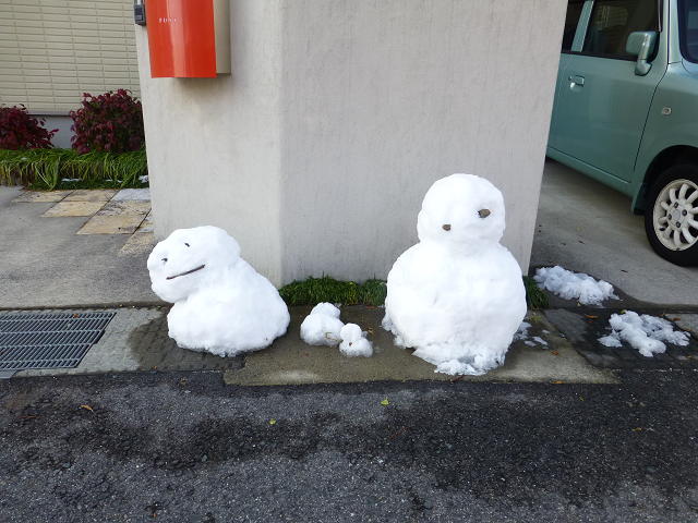 道路に数センチ積もる程度ですが、土のところは10cmくらい積もってました。