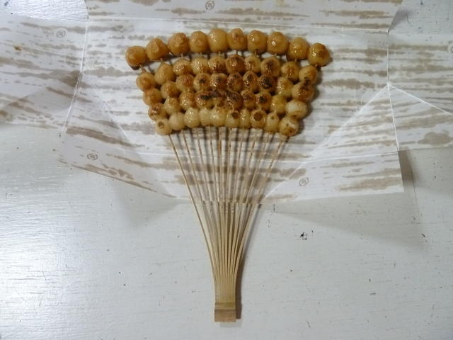 お餅自体は直径1,5cmほどで小さいですが、丸めて刺すの地味に大変そう。
