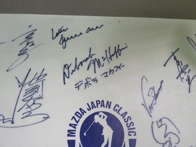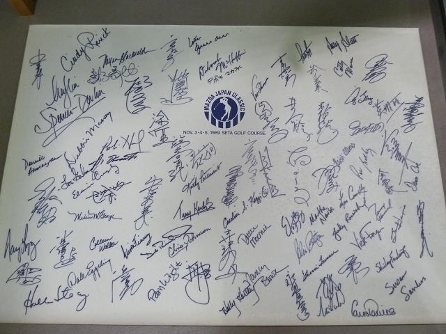 真ん中の青いのを見ると、どうやら1989年に瀬田のゴルフコースで行われた女子ゴルフの試合に参加した選手のサインのようです。