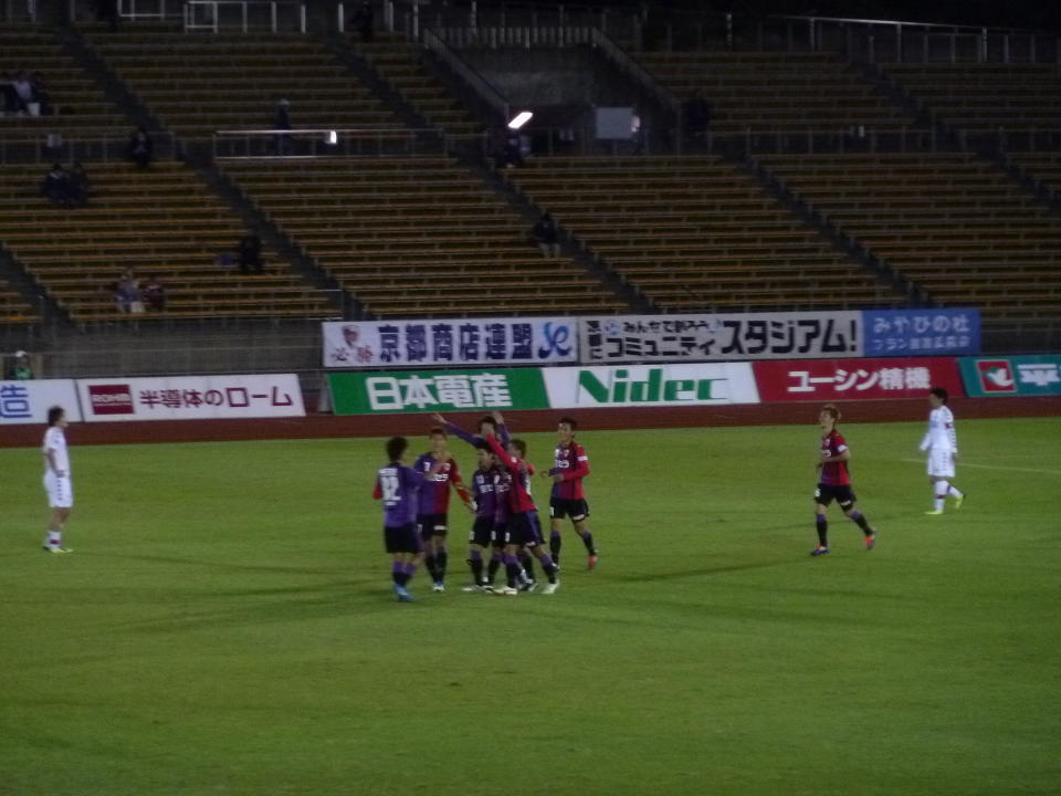 この試合2得点の中村充選手もお役御免の交代で、笑顔が出てます。