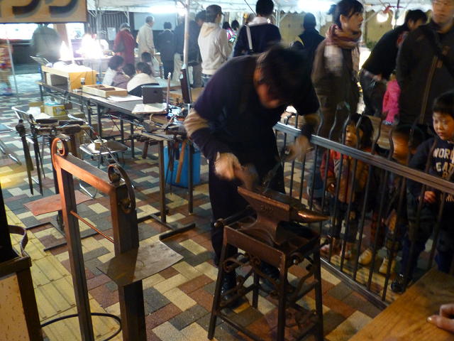 鉄細工で、鉄をかなづちで打ちつけてます。