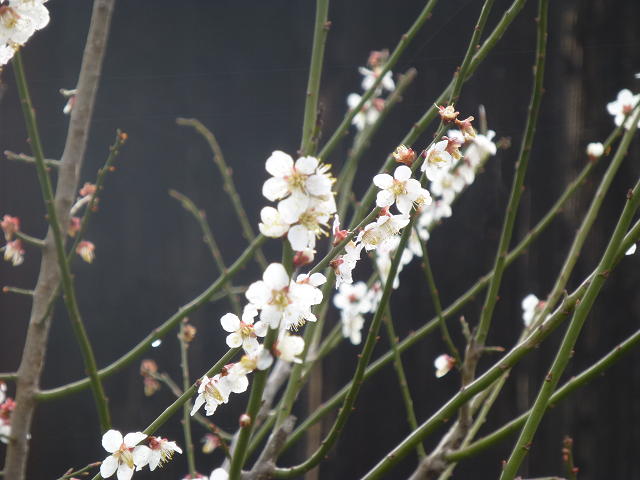 梅は花柄(枝から花までの茎)が短くて、枝から直接花が咲いてるような感じ。