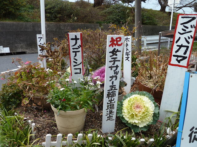 サッカー女子のことやら花の名前や鳥の名前の立て札があるところです。