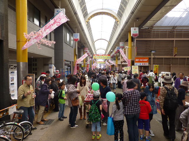 商店街の方へ行くと、人人人。