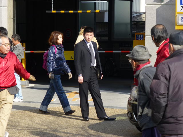 真ん中の黒い上着の人が来ると、辺りがざわつきます。